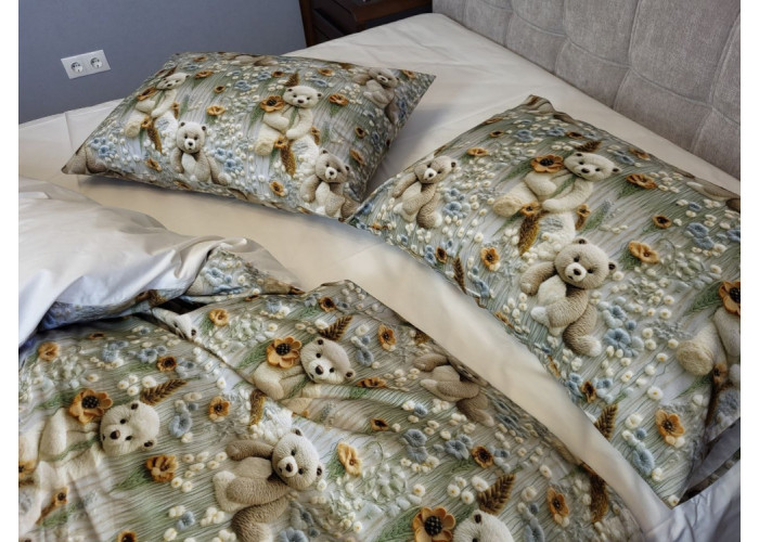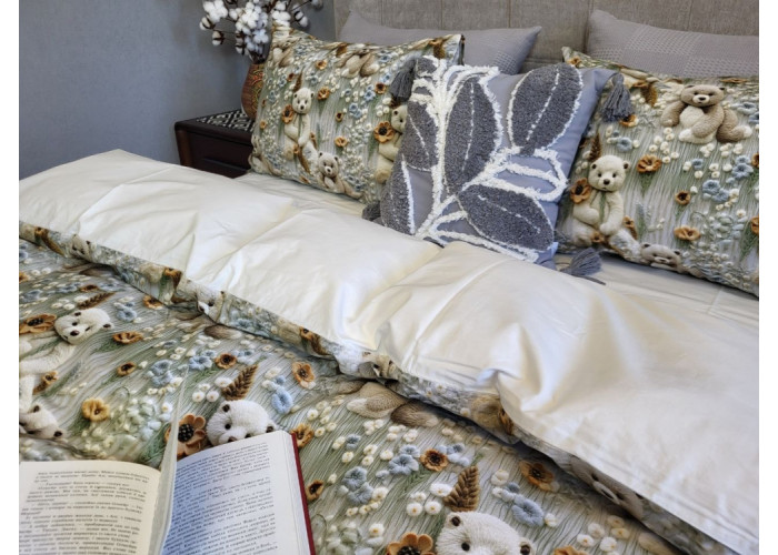 Комплект постільної білизни Ведмедики плюшеві молочн., cotton 5D