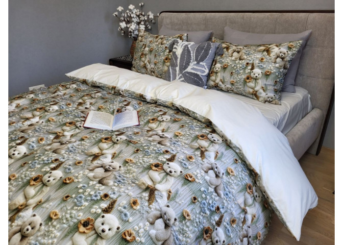 Комплект постільної білизни Ведмедики плюшеві молочн., cotton 5D