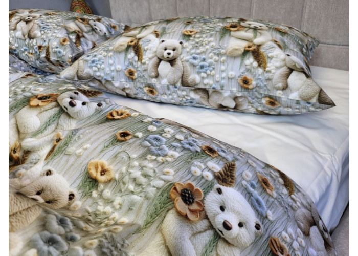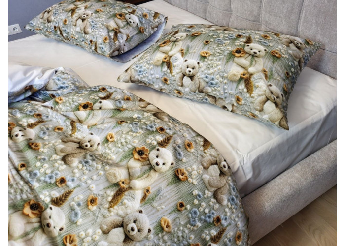 Комплект постільної білизни Ведмедики плюшеві молочн., cotton 5D